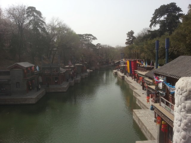 Summer Palace is a big traditional Chinese palace about half an hour by Metro outside the city centre. It's beautiful. We luckily arrived early, as we always do, before the swarms. It's more a park with palace bits everywhere than an actual palace, which is nicer than a palace anyway because there's a limit to how much palace you want to see. So it's mostly outdoors. The colourful temples stack up the hillside, and if you don't realise there's an easy path (us) you climb up to visit them all. My favourite part was near the start. It was like a little village on the river. You would never see a walkway with a sheer drop into deep water in Ireland. We'd have a nice sturdy railing and a cautionary sign, if we even opened it to the public. The Chinese are a little less safety conscious but I bet no one has ever fallen in. The village was a bit tainted by the fact that all the shops were filled with tourist tat.