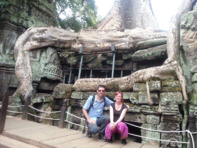 Angkor Wat is spectacular. I liked it because it was all stone, with no gaudy gold or painted decor. Walking around it felt like being in a computer game. Someone else must've thought this too, because one of the other temples in Angkor (there are 85. No matter how beautiful, that is too many temples) was where they filmed Tomb Raider. Our guide wasn't mad about the Tomb Raider temple, probably because of the media hype, but it was my favourite. Angkor Wat is much better restored and in great condition but the Tomb Raider temple belongs to the jungle now. It has huge Strangler Trees growing through it that have now become integral to its structure. I did a hilarious computer game running and jumping motion for much of our Tomb Raider tour.