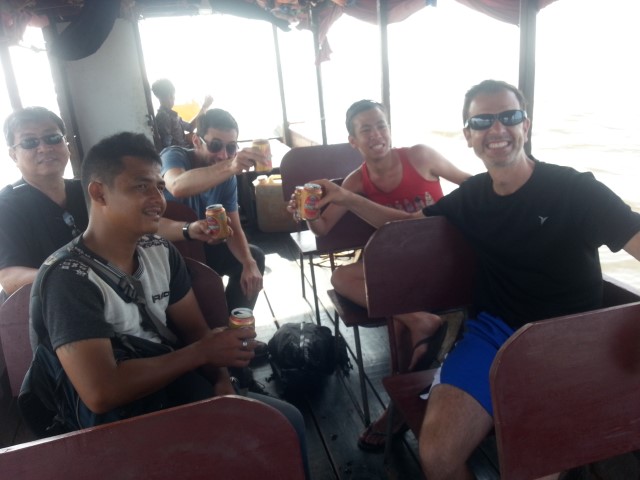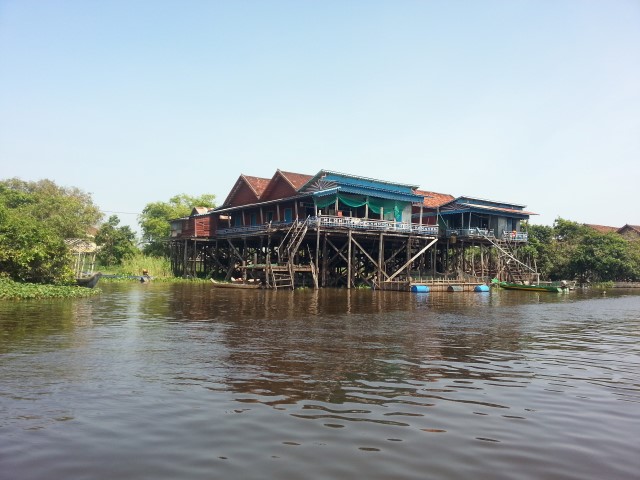 After dropping the kids back (they tap you on the back when they want to get off the bike) we drove to the floating village. The houses are all either on stilts, or actually floating as boats so that they can survive the wet season. Chantha told us that in wet season they fish, in dry season they're farmers. They often have to completely reconstruct their houses after wet season. We ate lunch in a lovely lady's house and then took a boat down the main street of the town out towards the lake. I couldn't help but notice that the religious temples were by far the most structurally sound, expensive looking buildings. As always.