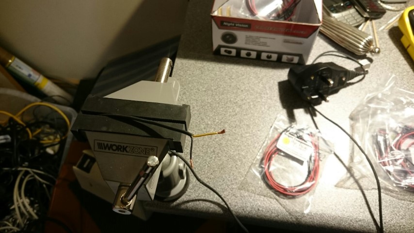 So we chopped off the end of the wire going into the battery holder, and soldered it onto the 5V charger. The LEDs were emitting light as powerful as the sun so we hastily added a resistor.