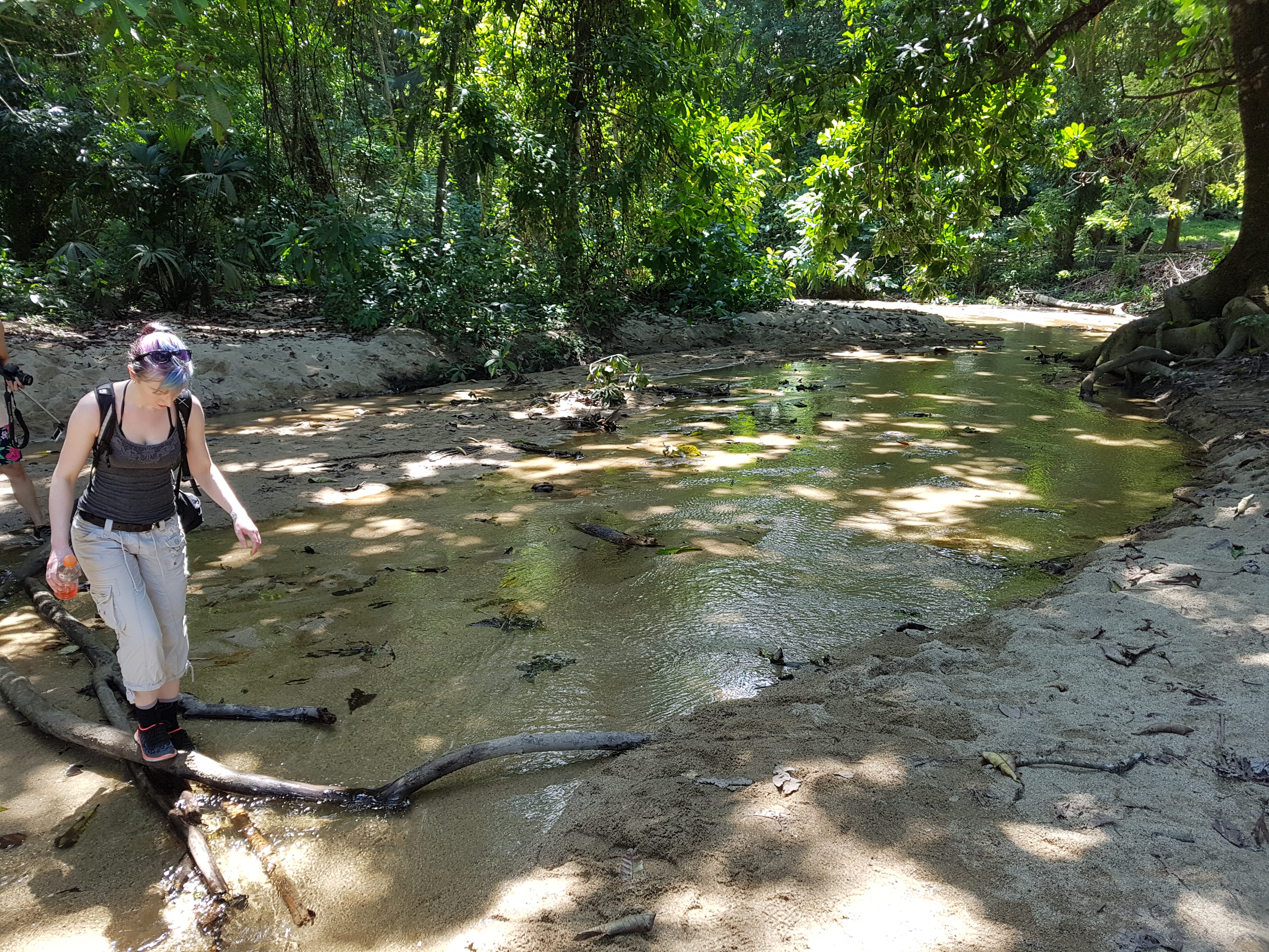 We bought our tickets and 5 minutes into the jungle walk were completely bathed in sweat. It was about 34 degrees, but not so bad in the shade. Along the way were two campsites, for completely insane people, but they did have toilets. There were also a few pretty beaches that we didn't have time to see properly because of aforementioned faffing (you have to leave before dark because the jungle doesn't have many street lights). It took three hours including our stops to make it to the final beach. Set in a sort of cove, El Cabo beach has that emerald colour that you assume has been photoshopped. On a hill looking over the sea there are hammocks where the most hardy of adventurer can stay overnight. Those are the sort of adventurers who wear khaki jackets with combats, and the type I hope never to be associated with. You're basically under a big umbrella sharing the space with 30 strangers, in hammocks. No thanks.