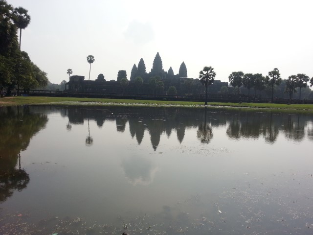 Angkor Wat is a large formerly Hindu and presently Buddhist temple just outside Siem Reap. Throughout history its religious affiliation has changed depending on who's in power. We hired a tour guide. When you're limited in time it's much easier, and things cost nothing in Cambodia. He turned out to be a former Buddhist monk and spent much of the tour trying to convert us to Buddhism. We read to cover shoulders and knees as always, men included this time, and when we met him asked was our attire suitable. He looked sadly at my t-shirt and said the sleeves might be a bit short. I specifically read that a t-shirt was fine coverage so I think he hated shoulders more than most.