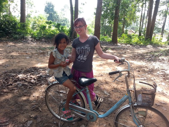 Our second day we again opted for a tour. This one was of some local villages, a real market (as opposed to the tourist Art Market), and one of the famous floating villages. This tour was wonderful and a little sad. The villages show a different picture to Siem Reap city centre. At one point we veered off the road into the jungle to see an abandoned temple. En route about 20 tiny children joined us, climbing on the backs of our bikes. I was terrified I'd crash but she wasn't having any of it. Our guide Chantha explained that he always brings stuff for the kids like sweets and pencils for school. Heartbreakingly he told us that he meant to bring them some schoolbags this time but forgot.