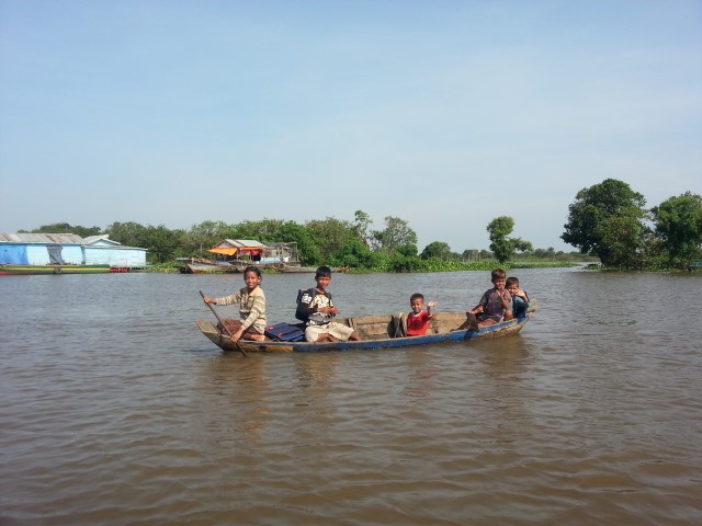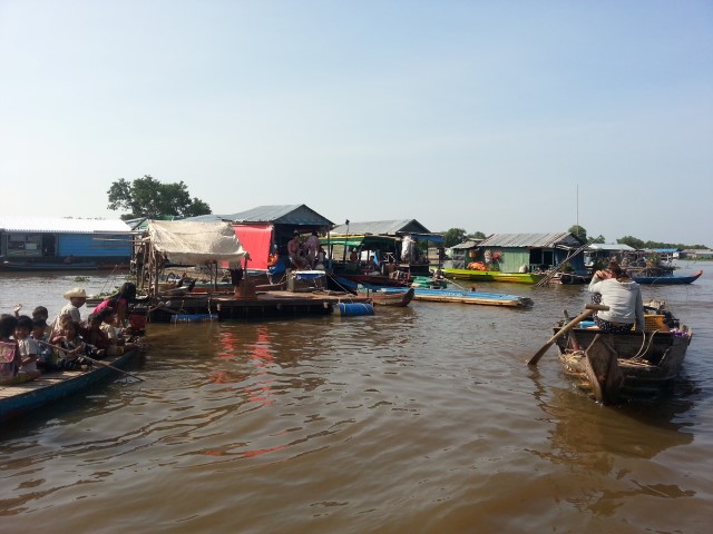 I found it strange to think that we in the West work in offices to save money so we can go to Cambodia and stare in fascination at this poverty-stricken floating village. In a way it's nice to see simple living, and their wooden houses on stilts out in the river. But really, all those little kids needing schoolbags is very sad.
