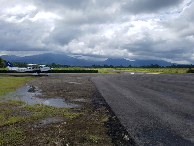 We flew from Arenal to Drake bay, via San Jose, in a Cessna Caravan. These are tiny little planes with 10 seats, no tea trolley, and about 3 jokes about the tea trolley per flight. We sat right up the front and could watch the course and weather maps over the pilots' shoulders. The airport was smaller than my flat, and check-in gave us a plastic boarding card, which we had to give back on the steps to the plane. I loved it.